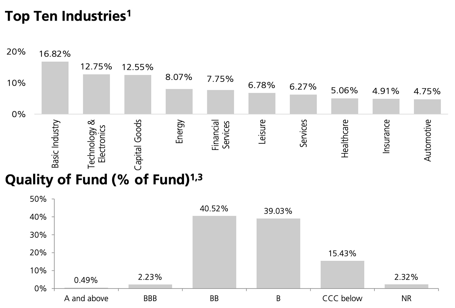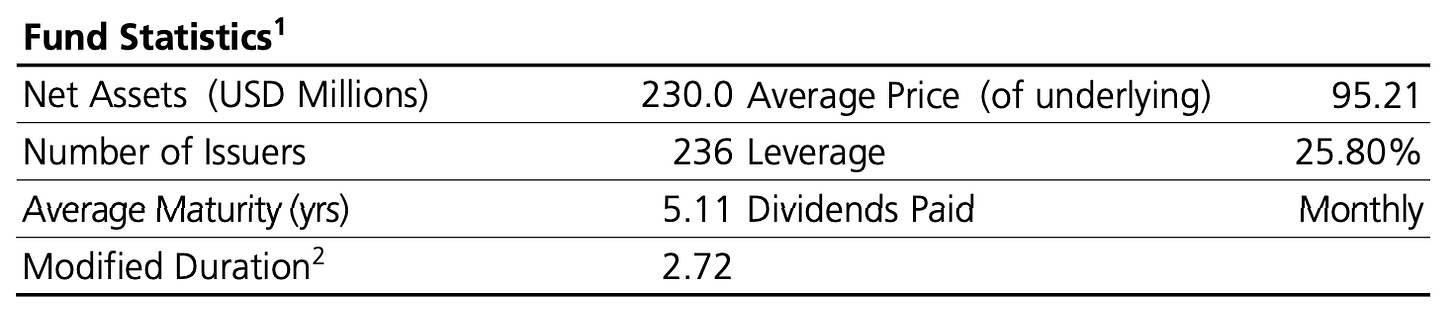 The fund’s selection process is pretty straightforward. The lower duration helps minimize exposure to interest rate risk, while the overall credit quality profile doesn’t look too poor when compared to some of its peers in the CEF space. The one thing that concerns me is the use of leverage. Junk bonds within CEF structures can be volatile enough. Add in leverage and you often end up with a really volatile product. That may or may not translate into better absolute returns, but it usually fails to help on a risk-adjusted basis. The lack of excessive credit risk is encouraging for this type of fund, but it could still get hit hard if conditions turn.