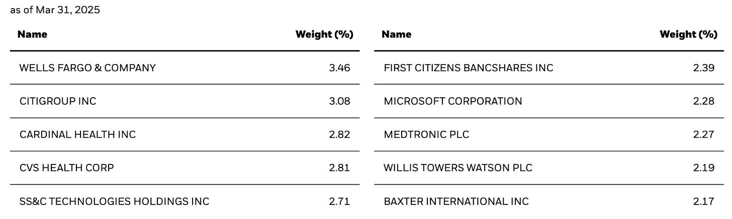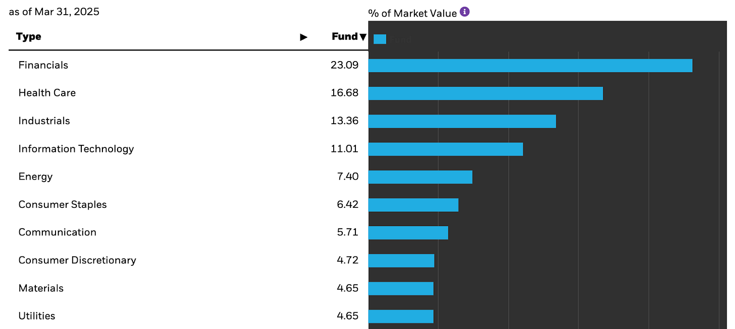 There’s plenty of financial sector exposure right at the top of the portfolio with two of the world’s biggest banks. Healthcare represents the fund’s 2nd largest sector holding and accounts for four of the top 10 individual holdings. And there’s Microsoft in there for good measure, a 20-year dividend grower even though it still yields less than 1%.