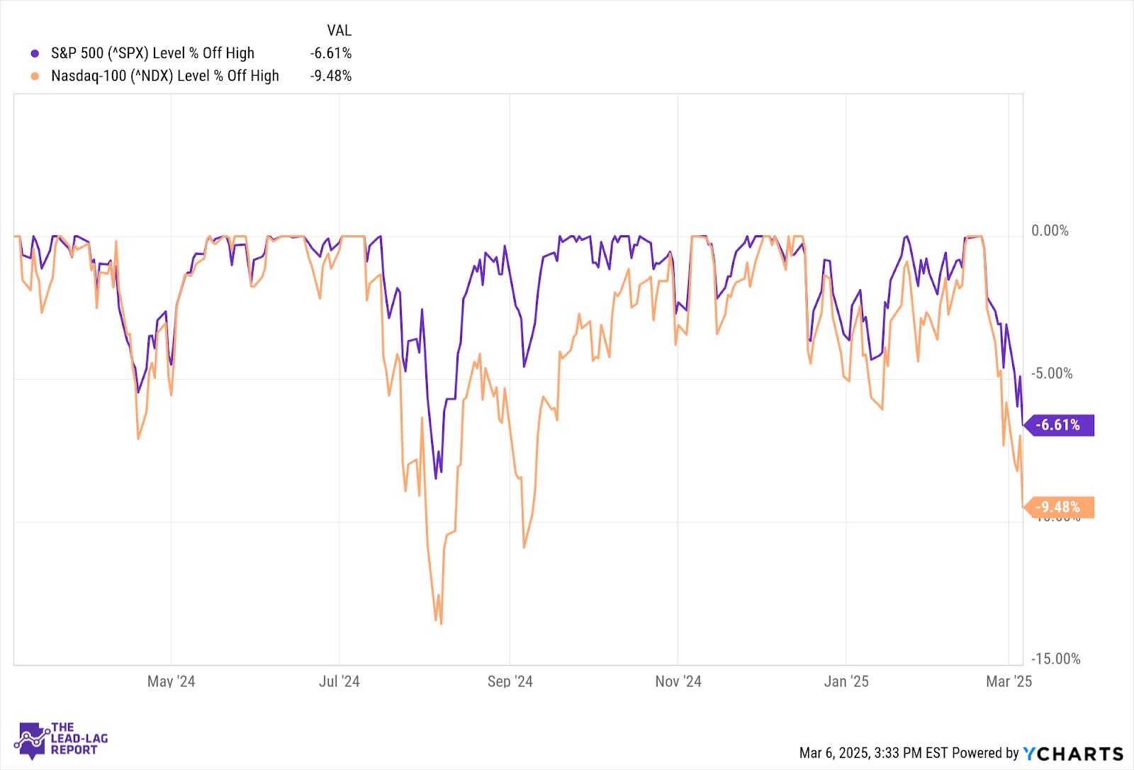 Take, for instance, this chart showing how far the major U.S. equity indices are off of their highs.