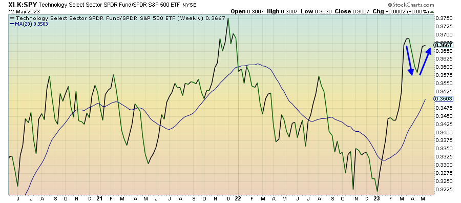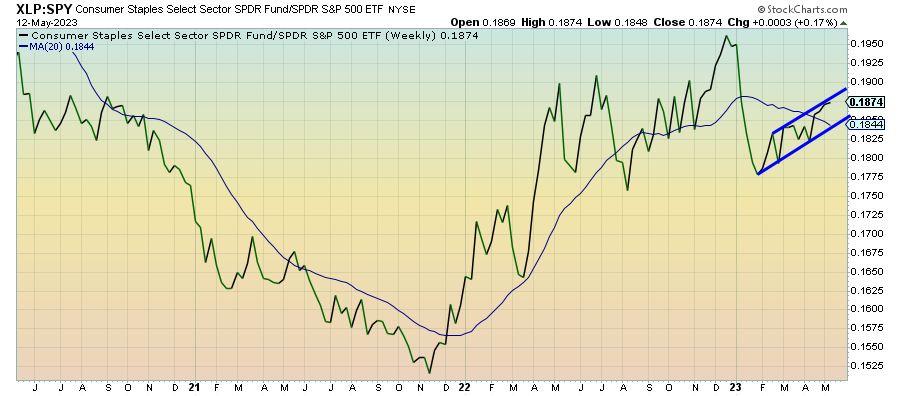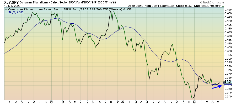 Consumer discretionary stocks have been lagging throughout most of 2023 as the macro backdrop shows deep concerns about slowing growth and consumer sales. The sector is staging a minor comeback here, which may be due to a positive Q1 earnings season. Lagging sectors tend to see more of a post-earnings pop if they deliver decent enough results. We may be getting that a bit here, but I’m not too encouraged just yet.