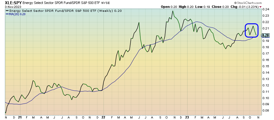 There are a lot of catalysts pulling this sector back and forth as evidenced by the choppiness of this ratio. The response to the Middle East conflict seems to have settled and brought crude oil prices back down again, but last week’s labor market numbers can’t be encouraging. Slowing global demand has been a big concern for this sector throughout the year and a labor market contraction would fuel this narrative.