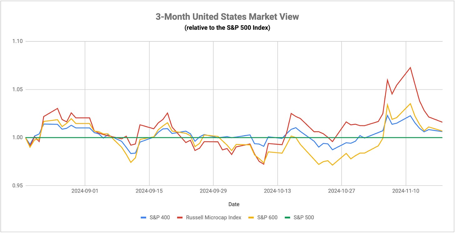 The Trump trade from a 30,000 foot view appears to be over for the time, but some of the sectors and asset classes likely to be direct policy beneficiaries are still doing well. Financials, energy and crypto have been the biggest winners, which means that value has also been making a comeback. The rallies, however, may be due for a pause and the chart above demonstrates how small-caps, which should in theory be a big winner of the Trump trade/Fed easing landscape, has failed to hang on to its momentum. This may be a sign that, while investors were initially enthused by the prospect of a pro-business environment, they’re starting to come to terms with the potential consequences of these policies. The obvious one would be inflation, which could pick up quickly with higher government spending, higher liquidity and the imposition of tariffs.