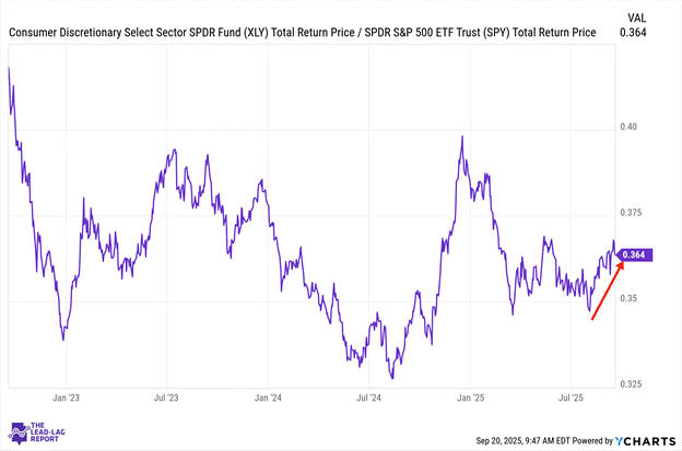 Below is an assessment of the performance of some of the most important sectors and asset classes relative to each other with an interpretation of what underlying market dynamics may be signaling about the future direction of risk-taking by investors. The below charts are all price ratios which show the underlying trend of the numerator relative to the denominator. A rising price ratio means the numerator is outperforming (up more/down less) the denominator. A falling price ratio means underperformance.