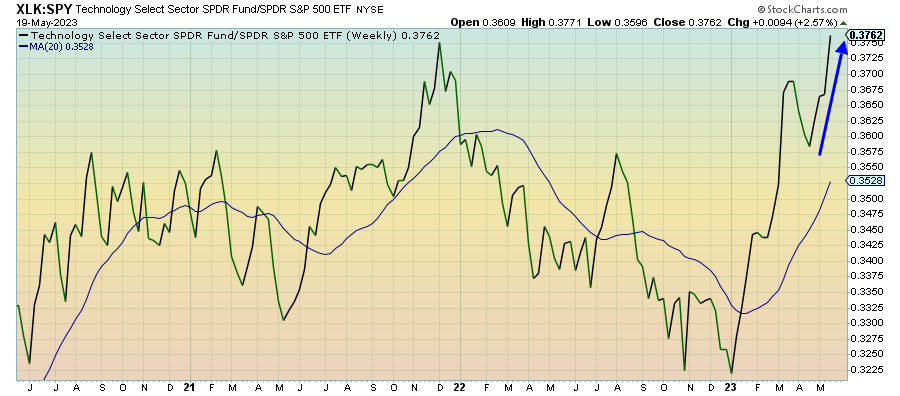 Even though breadth within the sector has been poor and a handful of mega-caps are driving gains here, tech has undoubtedly done well in recent weeks. This ratio just cleared a new all-time high, which brings the question of relative value back into the discussion. Tech is back to trading at 26 times forward earnings, which usually isn’t where you want to be heading into an economic slowdown. It’s a big part of the reason this sector performed so poorly in 2022 and could be again soon.