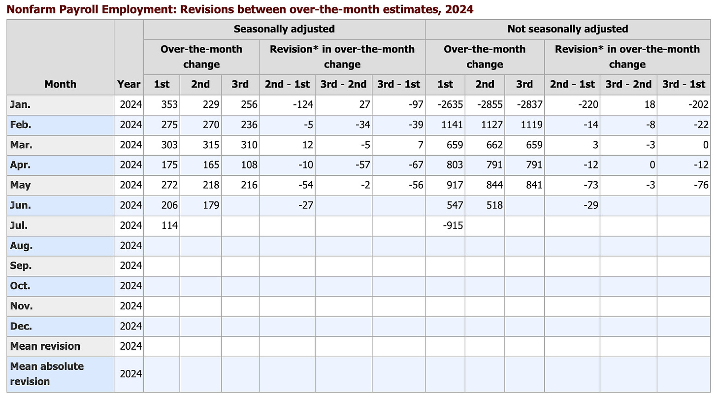 The markets got an unwelcome surprise this week when during its annual benchmark revision to its non-farm payroll numbers, the BLS announced that job growth was being revised downward by 818,000 jobs over the April 2023 to March 2024 timeframe. Prior to this, the BLS said that the economy gained 242,000 jobs per month over this period. Turns out, it was only 174,000.