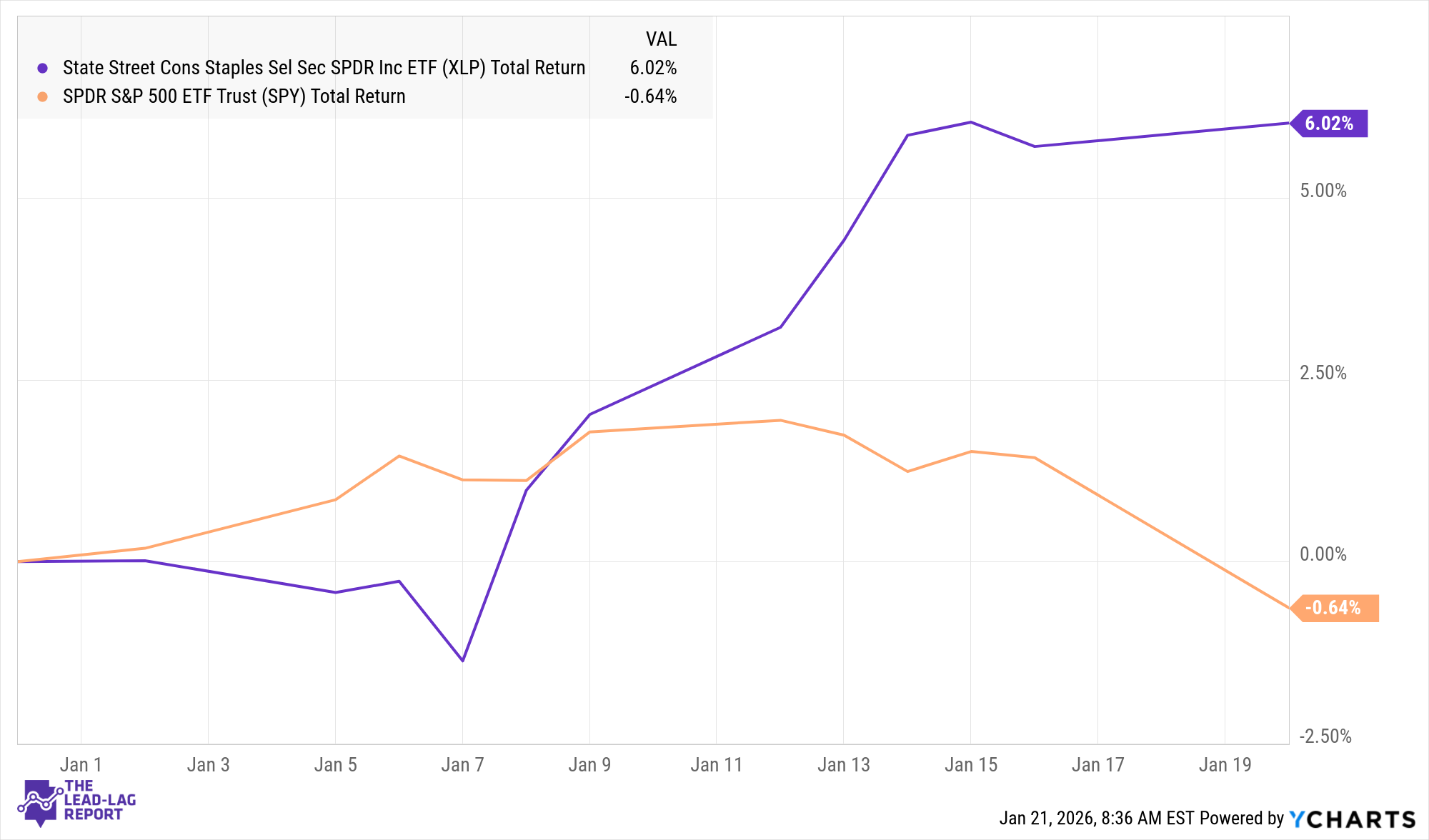 Investor positioning is shifting toward consumer staples as volatility rises and earnings visibility fades.
