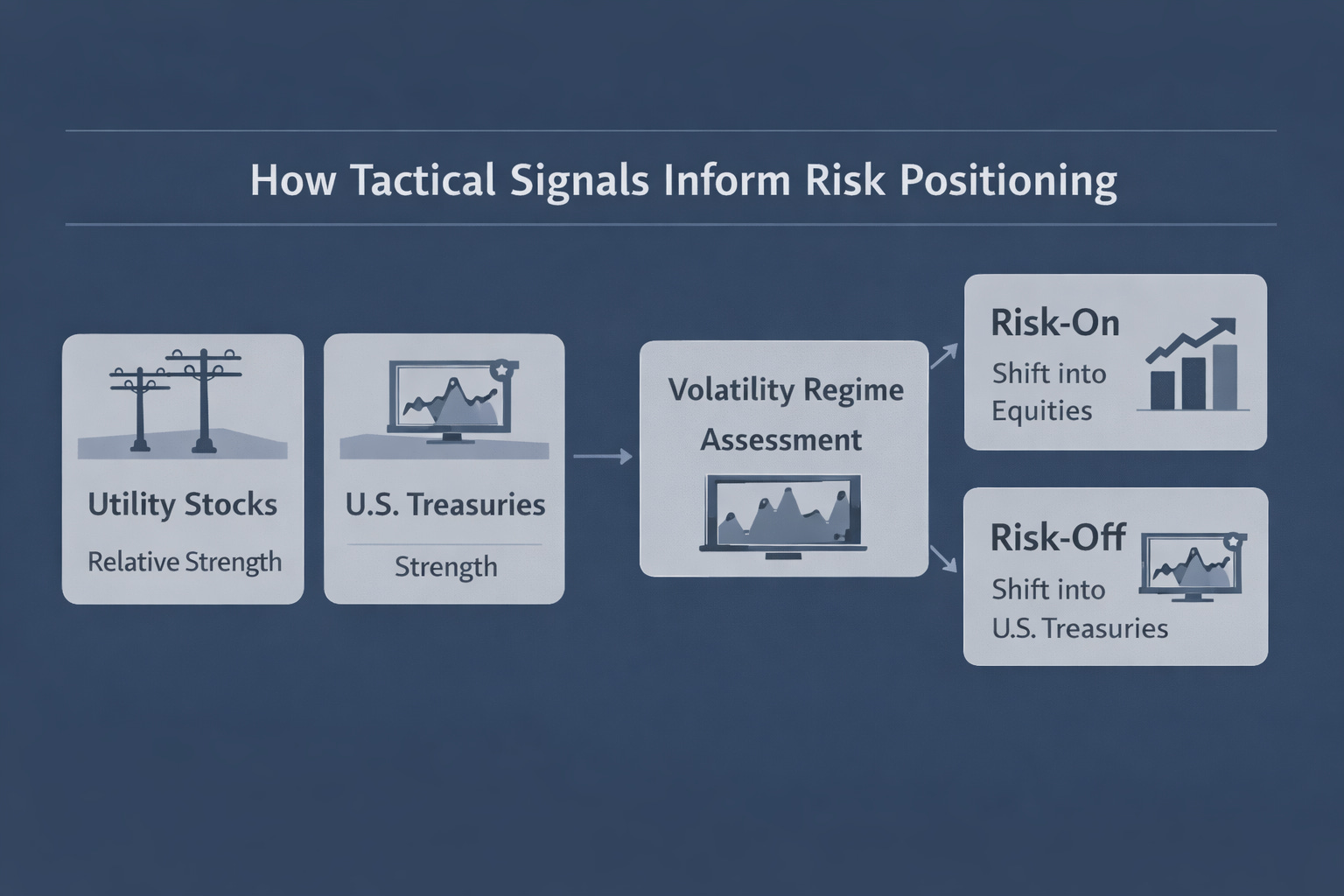 Utilities and Treasuries often attract capital during periods of rising uncertainty. When investors become more risk-averse, these assets tend to outperform broader equity markets. ATACX uses these relationships as inputs to determine whether the market environment is more conducive to taking risk or stepping back. When conditions appear favorable, the fund allocates to equity exposure. When signals deteriorate, it shifts defensively into Treasuries.⁷