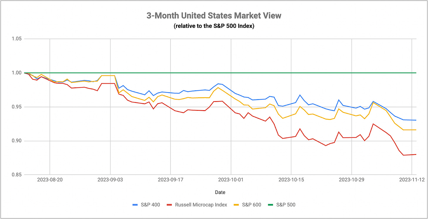 The October reading actually suggests to me that this is a sign the Fed has already overtightened. Interest rate hikes have roughly a 12-month lagged effect to actually show up in economic activity. A year ago, the Fed Funds rate had just been raised by 75 basis points to 3.75% on the lower bound. Today, it’s at 5.25%. That means inflation is quickly headed back towards 3% already and we effectively have 150 additional basis points of tightening coming down the pike. If that doesn’t have you nervous already, it should. The Fed has a long history of reacting too slowly and letting the pendulum swing too far in the other direction (Powell has actually said in the past that he prefers overtightening in order to ensure the job gets done versus undertightening and letting the problem persist). If that’s the case again, and there’s every reason to think it will be, we’re heading towards a deflation regime that’s likely to sink most risk asset prices pretty significantly. Two weeks ago, we got an everything rally led by defensive issues. Last week, we saw the equity market led by a very small number of mega-caps. This week, we’re getting another everything rally led by defensive issues. This is the sort of short-term risk-on move that sucks in the bulls only to leave them high and dry.
